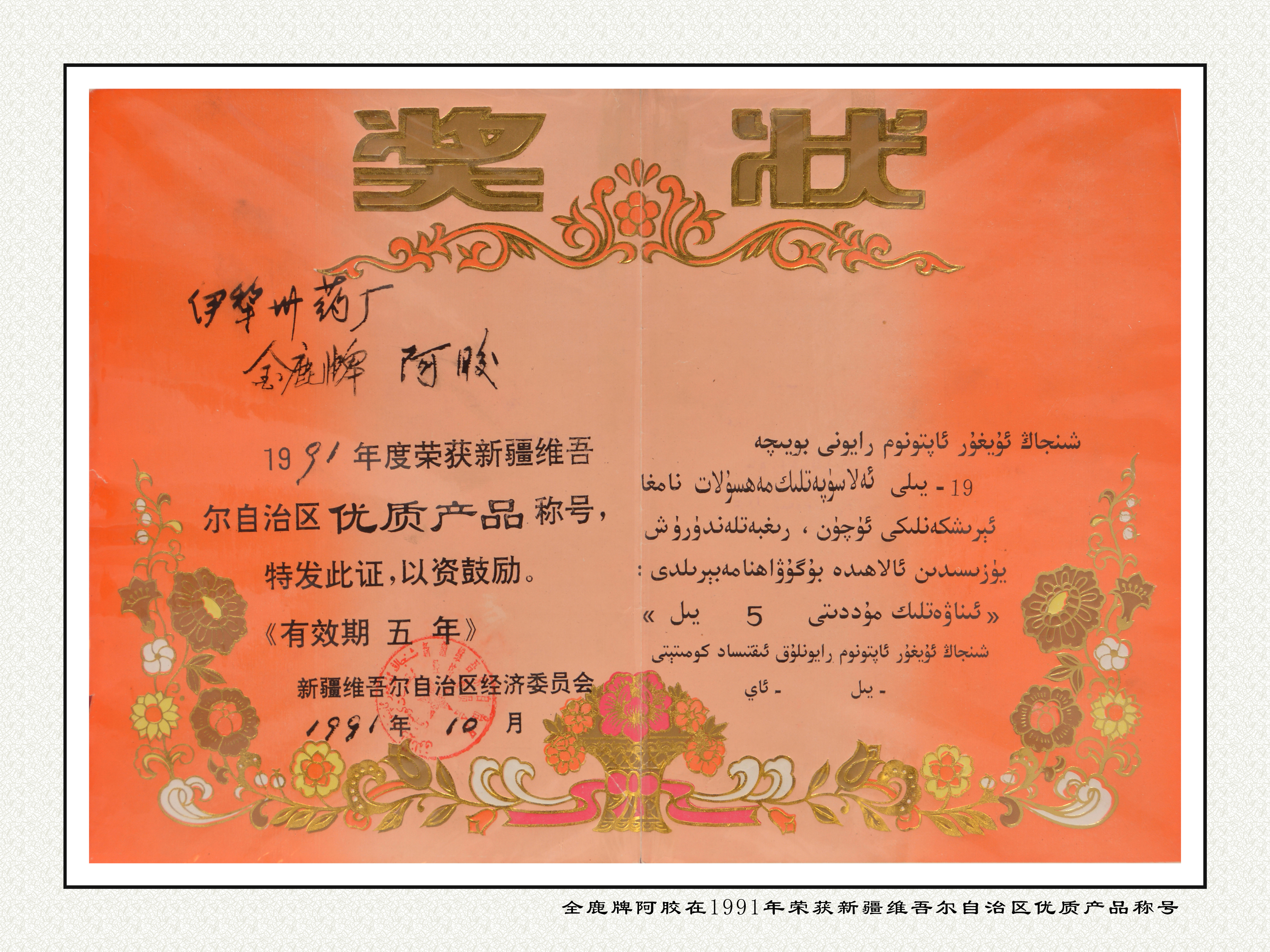 全鹿阿膠優(yōu)質(zhì)產(chǎn)品獎狀